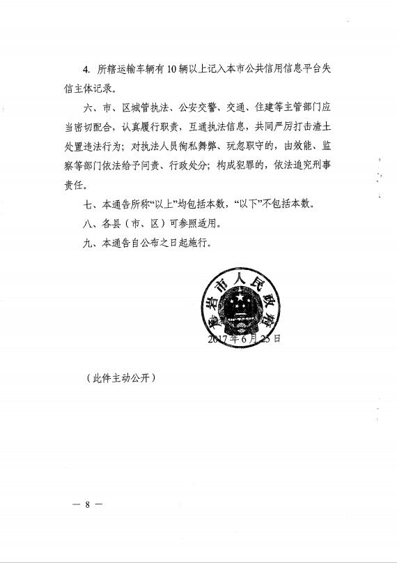 龍巖市人民政府關于嚴厲打擊渣土處置違法行為的通告(通告【2017】3號)