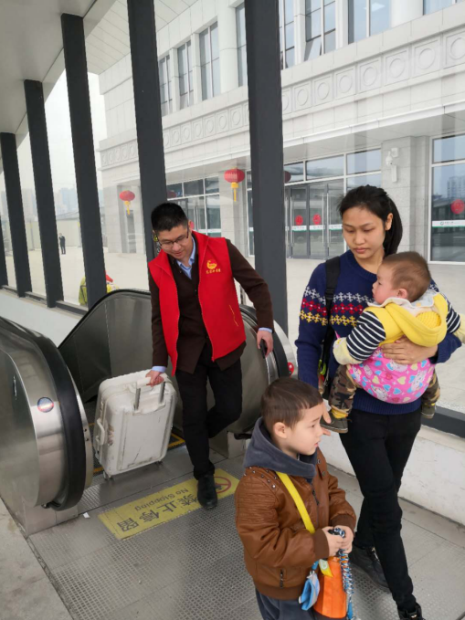 在火車站服務(wù)最需要幫助的有三種人:一種是殘疾人,一種是老年人,另外一種就是一手抱著小孩一手提著行李的旅客。因新建火車站剛剛啟用,“請問進(jìn)站口在哪兒?當(dāng)一位拿著大包小包還帶著孩子的旅客問到。“在這邊,我來幫你?!?/span>志愿者一邊指著路一邊接過旅客手中的包,一路將她送至進(jìn)站口。