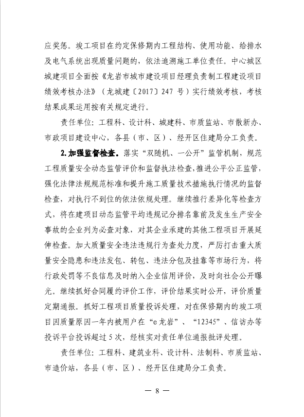 龍巖市住房和城鄉(xiāng)建設(shè)局關(guān)于印發(fā)開展房建和市政工程質(zhì)量提升行動(dòng)加快質(zhì)量強(qiáng)市建設(shè)(2019-2021年)工作方案的通知